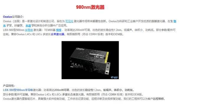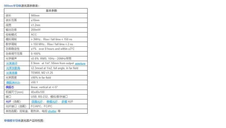 980nm半导体激光器 窄线宽 低噪声 体积小 功耗低